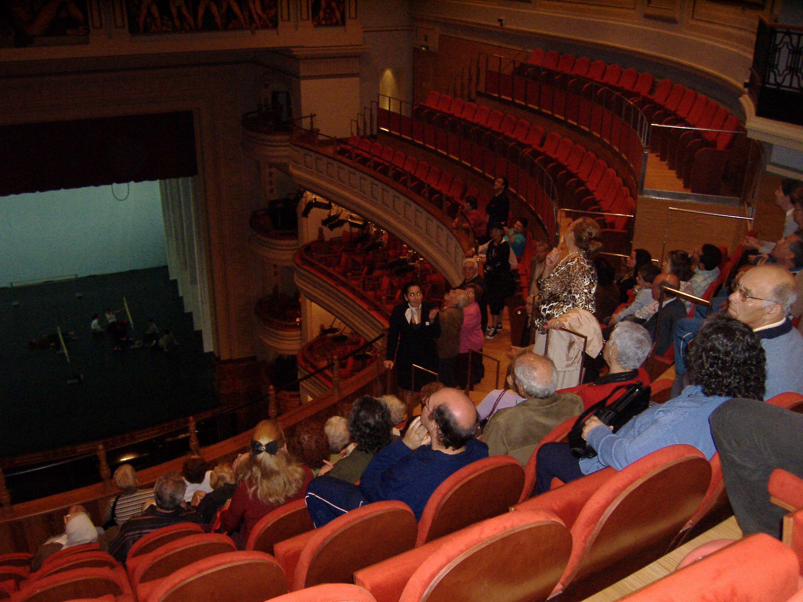 Una vez dentro del Teatro, visitamos los distintos vestíbulos, así como la platea y el segundo anfiteatro, este último, resultado de unir el paraíso con general. Lo cierto es que con esa obra, y pese a una cierta sensación de vértigo, se ha ganado en visibilidad y comodidad.