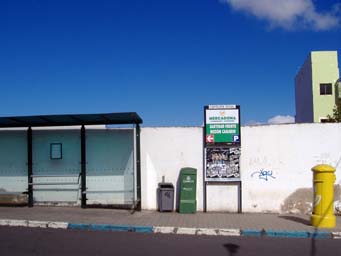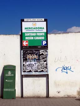 Éste es el anuncio que han puesto junto a la parada de la guagua, en la plaza del barrio. Como se ve en el detalle, indica la dirección en que se encontrará el supermercado.