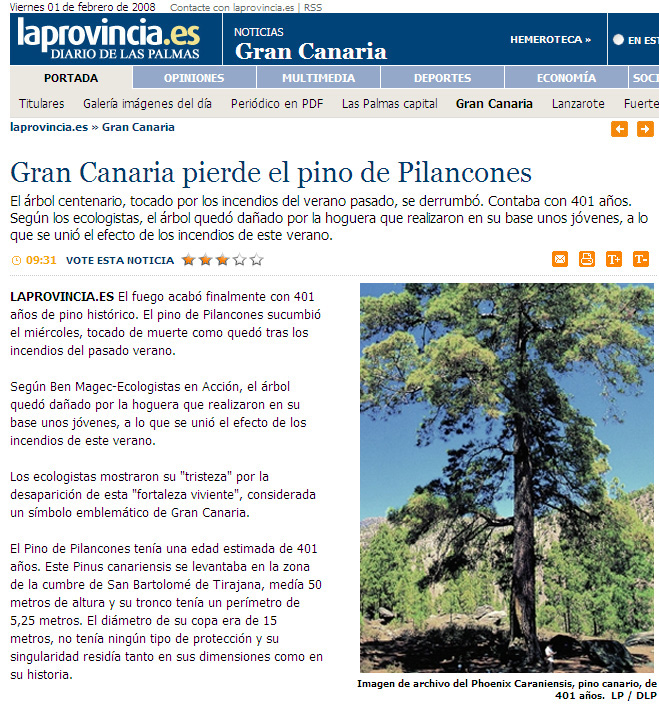 Releía ayer la noticia que publicaba La Provincia sobre el Pino de Pilancones, cuando algo en el pie de la foto me llamó la atención: