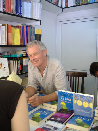 Aún así, no pude resistirme a esperar a que terminase de firmar un ejemplar de El loro en el limonero, para agradecerle algunos de los ratos más divertidos que he pasado ante un libro en los últimos meses.