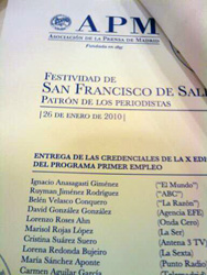 Aunque esta edición del programa fue presentada oficialmente el pasado mes de noviembre y casi todos sus integrantes nos hemos incorporado ya a nuestros puestos de trabajo, el protocolo de la Asociación exige que se nos haga entrega de una credencial como beneficiarios del mismo. Esa entrega se realiza en la comida que se celebra coincidiendo con la festividad San Francisco de Sales, patrón de los periodistas, que ha tenido lugar hoy.
